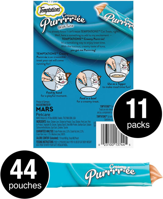 Creamy Puree Squeezable Lickable Wet Cat Treats with Tuna, 0.42 Oz. Tubes, 4 Count, Pack of 11 (44 Total)